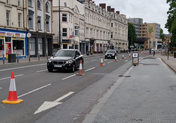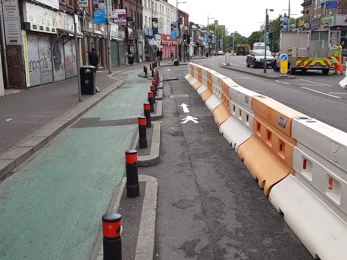 I think those two examples from Manchester are reallocating the cycle lanes to pedestrians to facilitate social distancing rather than barriers to “protect” the cycle lanes.