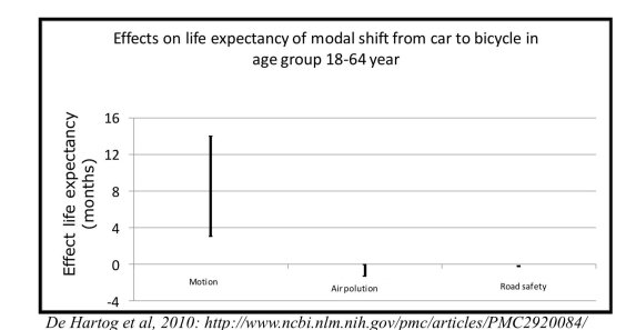 Here is just one of many illustrations of the health benefits of shifting from car use to cycling: