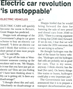 But what about a future where the UK grid becomes more based on non FF sources? Firstly, there is the question of priorities: if we are going to move to cleaner energy, where do we think it is most important that it should be used? Energy is used primarily for domestic (heating, lighting, cooking etc.) use; then there are industrial, commercial uses, street lighting, powering railways etc. Are these uses not more important than personal motor vehicular transport? So here’s a thought: if we are to have EVs, shouldn’t their owners pay the full costs of the additional “clean” energy that they would have to use in order to fulfil their potential? (When I say “costs” I mean the costs of installing and operating the solar/wind/wave or whatever green energy source is used – also, why not internalise the external costs, such as disruption to local communities of building the power stations?).